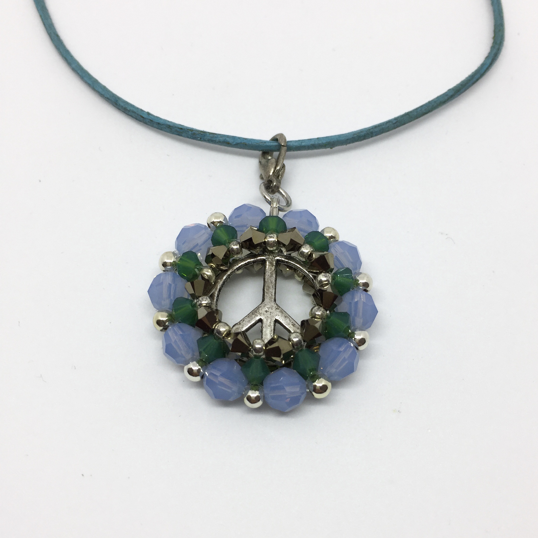 Handgefertigt aus Swarovski-Biconen und Rocailles.